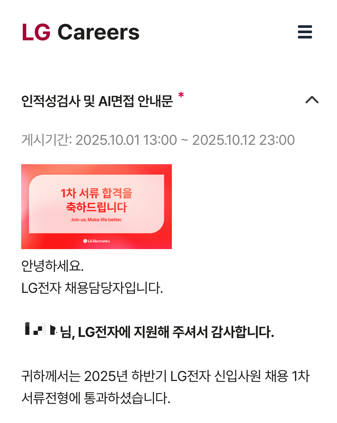 솔직히 LG 전자 불합격 한 건 너무 아쉬웠다