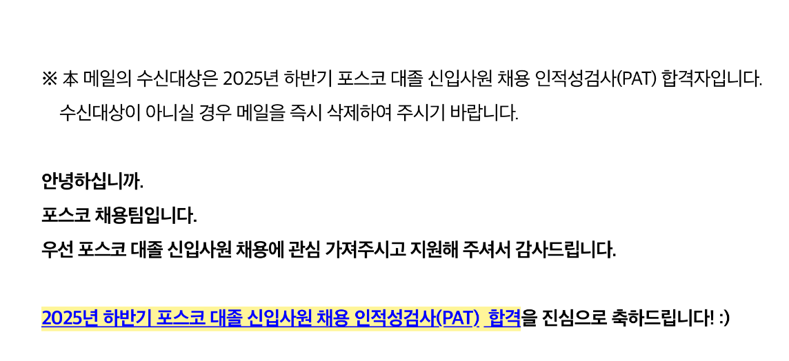 2025 포스코 서류합격 / PAT 후기(합격)취업 2025. 11. 8. 02:05
